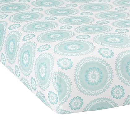 Lambs & Ivy Classic Aqua Medallion Fitted Crib Sheet best Baby Bedding