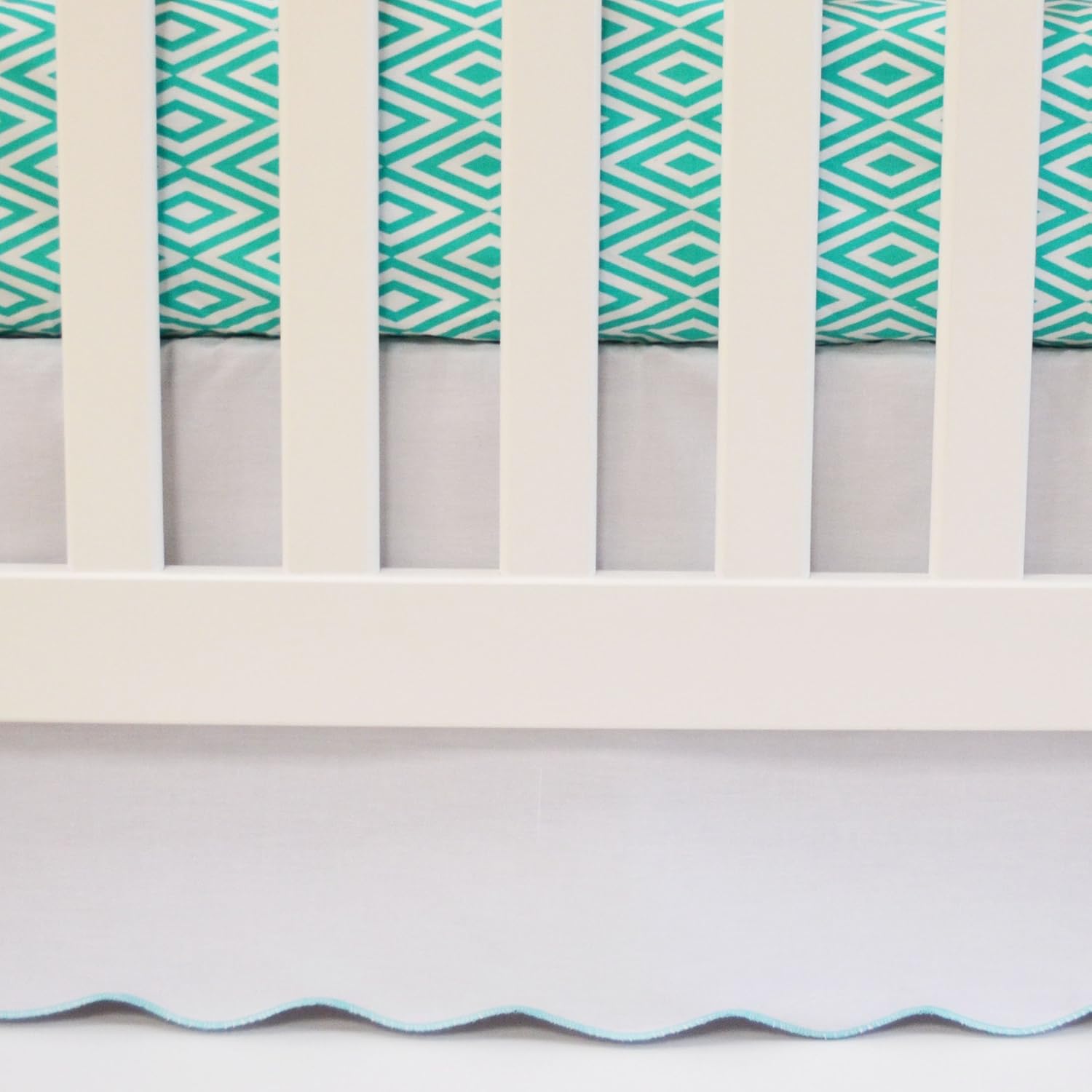 Oliver B Scallop Crib Skirt- White w/Turquoise Trim best Baby Bedding